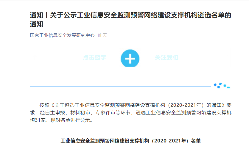 喜讯|热烈庆祝蓝军网安公司入选国家工业信息安全监测预警网络建设支撑单位